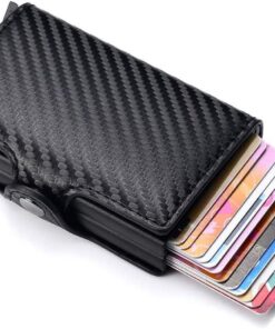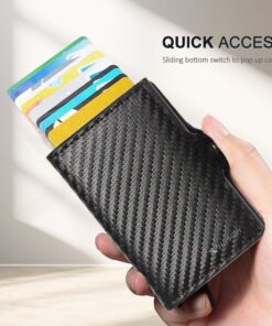 RFID Blocking Anti-theft PU Leather Credit Card Holder Wallet – Black Carbon Fibre