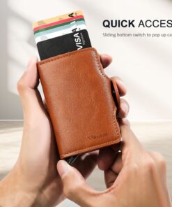 RFID Blocking Auto Pop Up PU Leather Double Credit Card Holder Wallet – Black