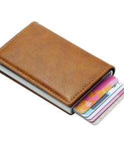 RFID Blocking Protected Aluminum Box PU leather Wallet. – Light Brown