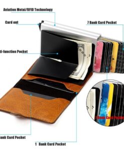 RFID Slide Out Leather Wallet with AirTag Holder – Brown