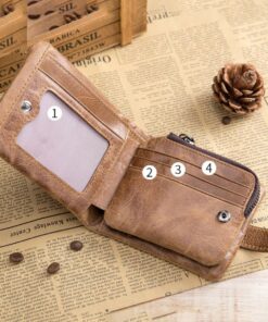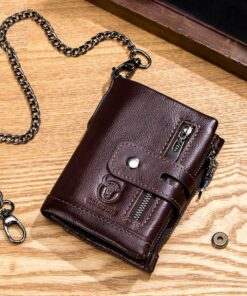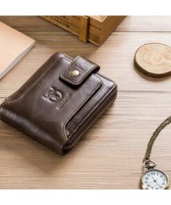 Bullcaptain Gunner Genuine Leather Bifold RFID Blocking Men’s Zip Wallet – Brown