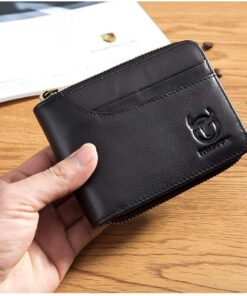 Bullcaptain Ferdinand Genuine Leather Bifold RFID Blocking Men’s Zip Wallet – Black