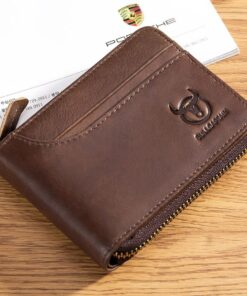 Bullcaptain Ferdinand Genuine Leather Bifold RFID Blocking Men’s Zip Wallet – Brown