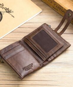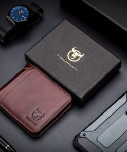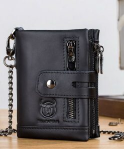 Bullcaptain Men’s Double Zipper Bi Fold Leather Wallet