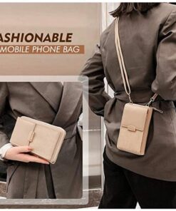 Women Crossbody Leather Shoulder Bag Cellphone Purse Wallet – Apricot