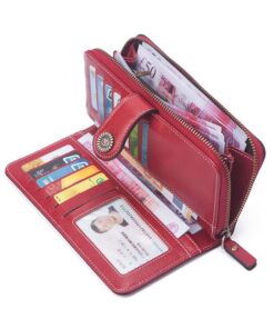 Womens Leather Credit Card Holder Wallet RFID Secure 24 Slots – Red