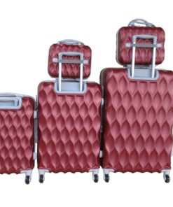 Durable ABS 5-Piece Luggage Set with Spinner Wheels, Red & Silver Accents