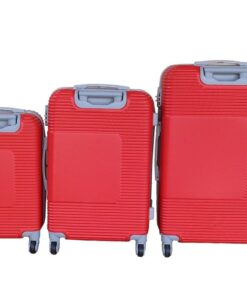 Durable ABS Luggage Set, 3-Piece Spinner Suitcases, Red, with Secure Lock
