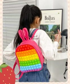 Mini Bunny Ears PopIt Backpack Push Bubble Fidget Toy Backpack – Dark Pink