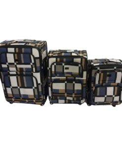 Quality Luggage Leather Travel Suitcase Set Checks Art – Set of 3 – Checkered Blue