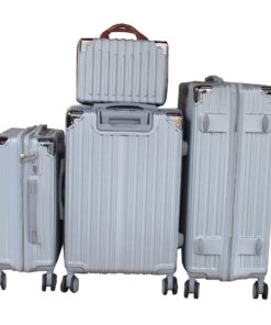 Silver 4-Piece ABS Luggage Set with Multi-Directional Spinner Wheels & Handles