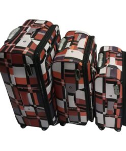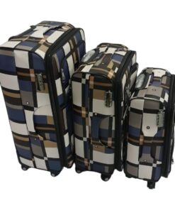 SMTE-Quality Luggage Set of 3 Leather Travel Suitcase Set Checks Art – C3
