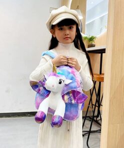 3D Unicorn Plush Back Pack Wallet Handbag Purse For Girls Gift Backpack – Purple