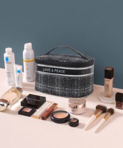 Women’s Zipper Cosmetic Bag Toiletry Lipstick Perfume Storage Pouch – Black