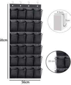 24 Pockets Hanging Shoe Storage Organizer with Hooks – Black