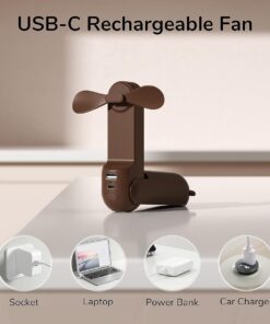 JISULIFE Handheld Mini Fan, 3 IN 1 Hand Fan with Power Bank – Rechargeable – Brown