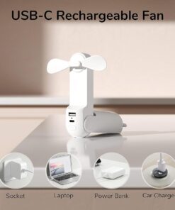 JISULIFE Handheld Mini Fan, 3 IN 1 Hand Fan with Power Bank – Rechargeable – White