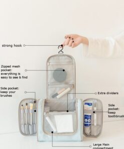 Olive Tree – Hanging Toiletry Bag Travel Cosmetic Organizer – Grey