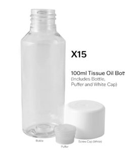Tissue Oil Empty Plastic Bottle with Cap and Puffer – 15 x 100ml