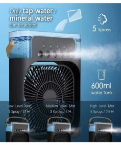 7 Colour Led Portable Air Cooler Fan With Mist Spray – Black