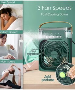 7 Colour Led Portable Air Cooler Fan With Mist Spray – Green