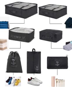 7 Piece Travel Luggage Organizer Set Multifunctional Clothing Sorting Bags – Black
