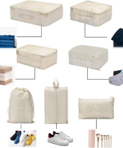 7 Piece Travel Luggage Organizer Set Multifunctional Clothing Sorting Bags – Off-white