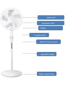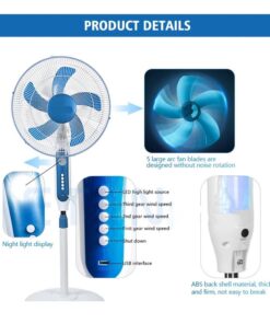 16-Inch Solar Rechargeable Standing Fan with Built-in LED Light