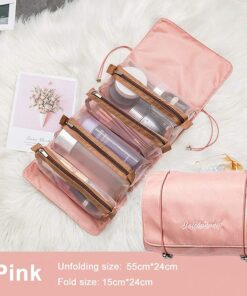 Detachable Cosmetic Bag Large Capacity Travel Makeup Bag Toiletry Organizer – Purple – Pink