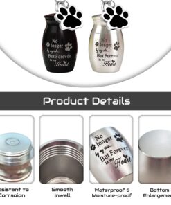 2 Pieces Pet Urns Keychain for Dogs Ashes Keepsake with 2 Storage Bags