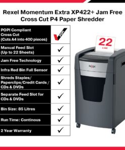 Rexel Momentum Extra XP422+ Jam-free Cross Cut Paper P4 Shredder