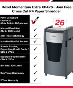 Rexel Momentum Extra XP426+ Jam-free Cross Cut Paper P4 Shredder