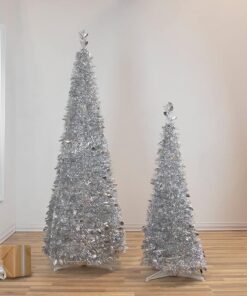Northlight 4′ Silver Tinsel Pop-Up Artificial Christmas Tree, Unlit