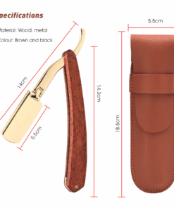 Retro Wooden Handle Cutthroat Razor | Leather Travel Pouch Included – Brown