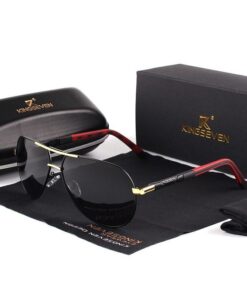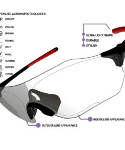 TROO SPORTS Photochromic Polarized Blue Light Blocking Carbon Fibre Glasses – Black, Red