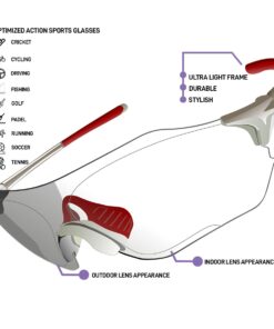 TROO SPORTS Photochromic Polarized Blue Light Blocking Carbon Fibre Glasses – White, Red