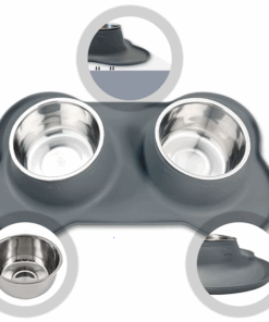 Cool Pets Grey Stainless Steel Bowl Feeder Set With Silicone Mat – L