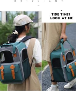 Deluxe Foldable Cat Carrier Backpack With Breathable Mesh Windows – Green