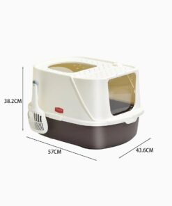 Meshine-White Semi-Enclosed Large Space Litter Box With Litter Scoop