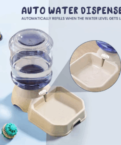MLEM 3.8L Automatic Pet Feeder & Waterer – Water Gravity Dispenser – Beige
