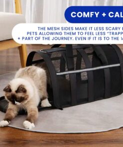 MLEM Light Pet Travel Bag Foldable Breathable Mesh Dog and Cat Carrier – Blue, Black