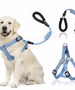 Pet Dog Harness Traction Rope Set Adjustable Dog Vest Outdoor Walking – Blue – L
