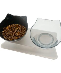 Pet Double Glass Cat Dog Raised Bowl Round Design (27cm) – Black