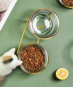 Pet Double Glass Cat Dog Raised Bowl Round Design (27cm) – Gold