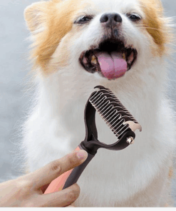 Pet Nail Trimmer Scissors with File & Pet Comb Massage Set – Large 17 Teeth – Pink