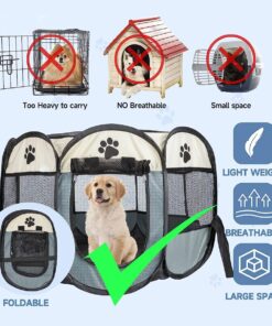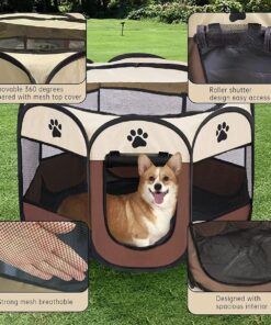 Pet Playpen Of Foldable Octagonal ,Waterproof Portable Dog/Cat Pet Playpen – Coffee