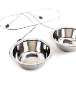 Pet Raised Food Water Double Bowl Stainless Steel Feeder (16.5cm)