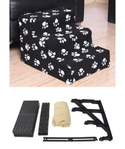 Pet Stairs Detachable Three-Story Staircase Assembly with Plush Cover – Black