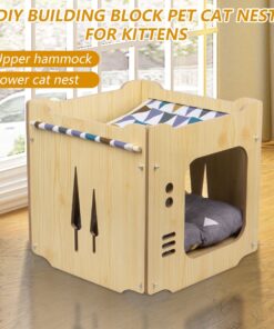 Pet Wooden Cat Nest Pet Hammock Bed with Soft Pad- Original Wood Color