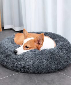 Ruff ‘n Tuff Plush small Pet Cushion Shag Fur Calming Bed – Grey